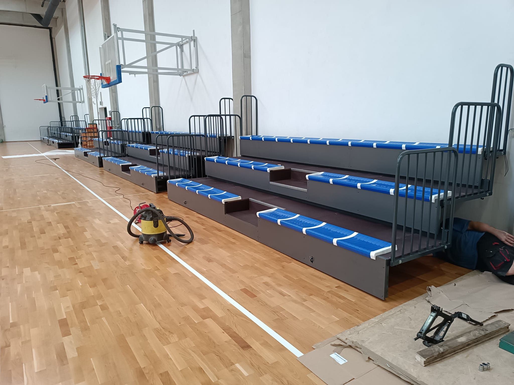 Elkészült a mobil lelátó az Árpád Gimi Sportcsarnokában