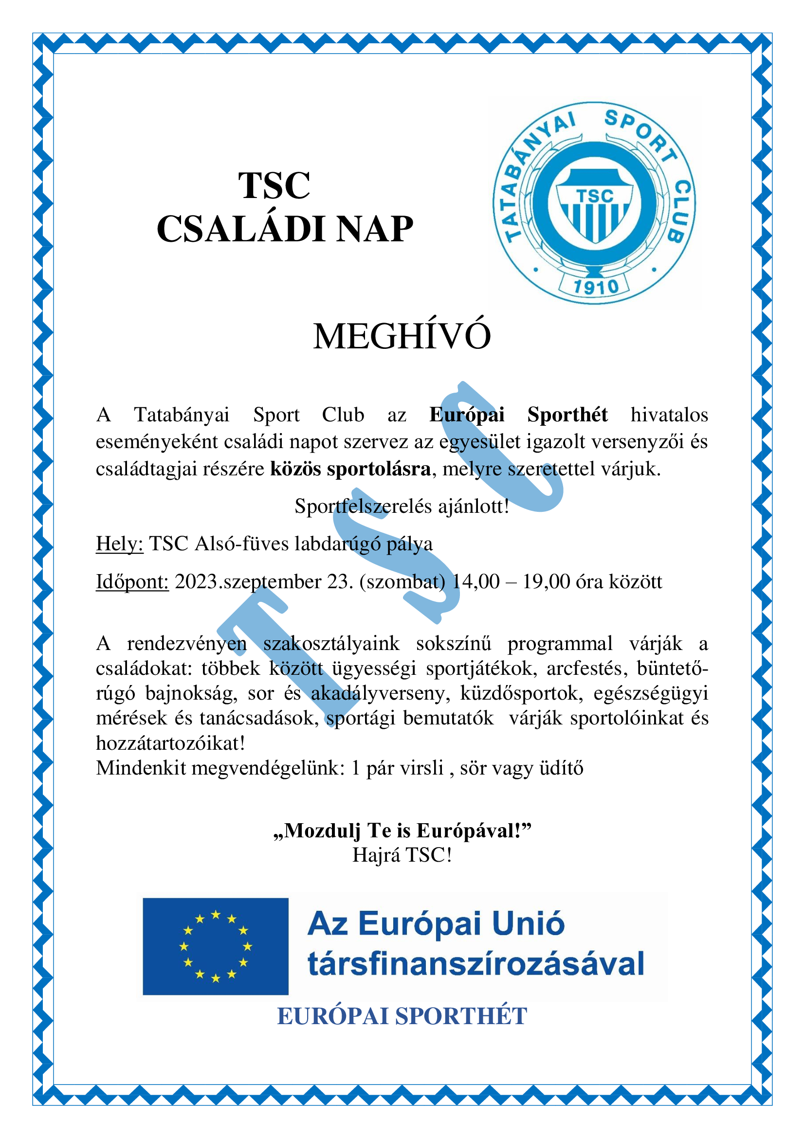 A VÁRHATÓ IDŐJÁRÁS MIATT ELMARAD A TSC CSALÁDI NAPJA