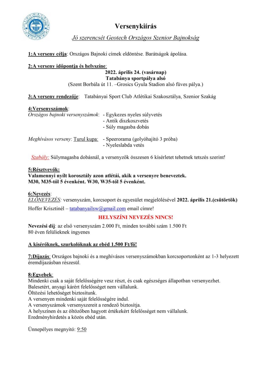 SZÉP SIKEREK A JÓ SZERENCSÉT GEOTECH ATLÉTIKAI SZENIOR OB-N