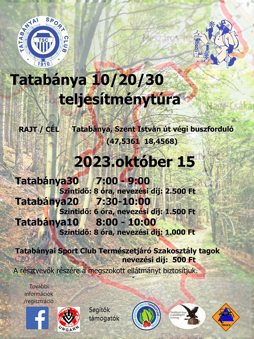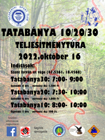 Vasárnap rendezzük a Tatabánya 10/20/30 teljesítménytúrát